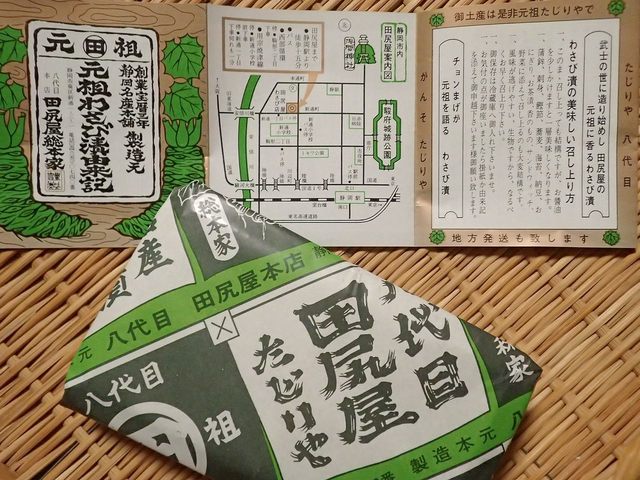 元祖わさび漬;掛け紙(展開)と由来記表紙 @2018/05/28