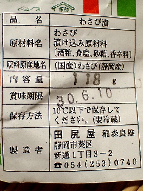 帰札して検めれば製造は“(株)米澤商店”さん;web検索すれば山葵問屋さんなんですね.