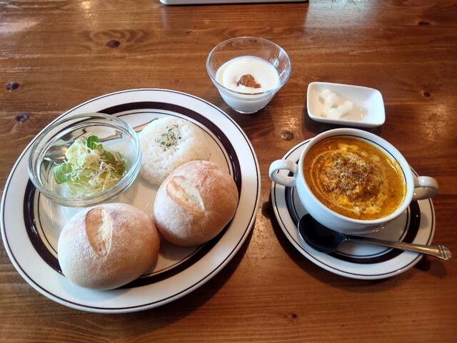 カレー ミニサラダ 手作りパン 小ごはん