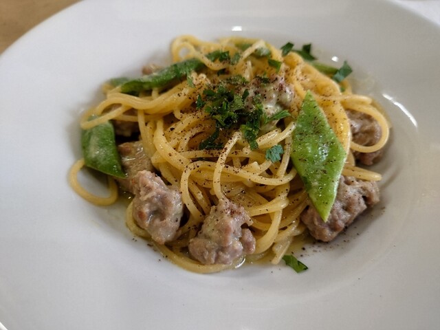 自家製サルシッチャとえんどう豆のスパゲッティー