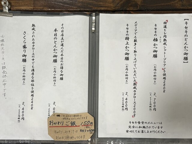 本日のとんかつ御膳(熟成カタロース160g)