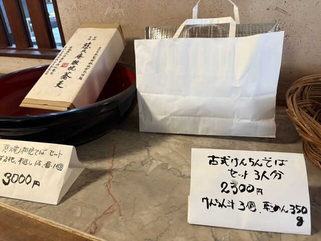 店主に座席を指定されて着席、誰もいないので思い切ってコースを注文することにしました。コースメニューの点のついた組み合わせが4品、野菜の天ぷらをつけると5品、全部だと7品です。5品のコースを一つはせいろ大盛り、一つは古式けんちんそばに変更して注文。