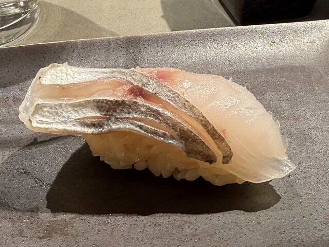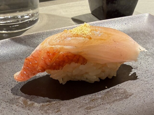 鮨は写真が物語るとおり、多くを申し上げる必要のない素晴らしい江戸前寿司です、仕込みよのいネタとシャリの握り、纏い具合よく、口の中で解ける感じが至福です。メニューのネタが切れ少し入れ替えもあり、希少部位の脳天、トロトロの煮穴子、烏賊や鯵、〆鯖にノドグロあたりが印象的でした。