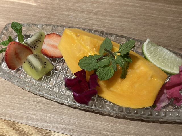 たっぷりのフルーツ、パパイヤはお肉の脂を酵素で分解してくれそう