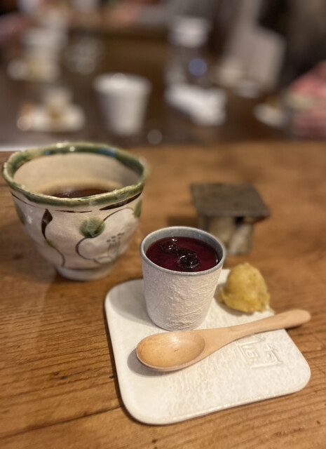 ベリーソースのブラマンジェとスイートポテトに珈琲♬