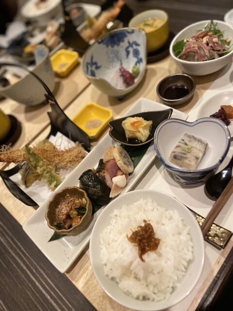 サラダ・ゴマ豆腐・茶碗蒸し・天ぷらなどなど種類多い~ෆ.*・゚