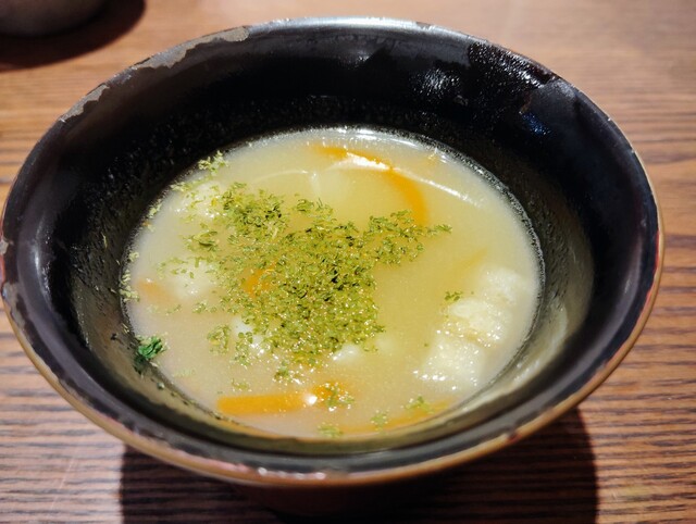 お通しは和風汁なポタージュ。クルトン入れると一気にそれっぽくなるのな(笑)