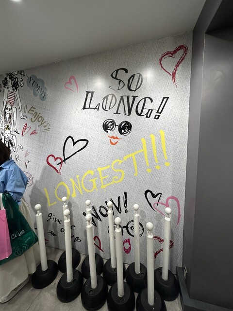 立って食べるには十分なスペースと、映えている壁紙があるので、チーズハッドグや長すぎるツイストポテトのInsta映えした写真が撮れます。