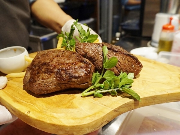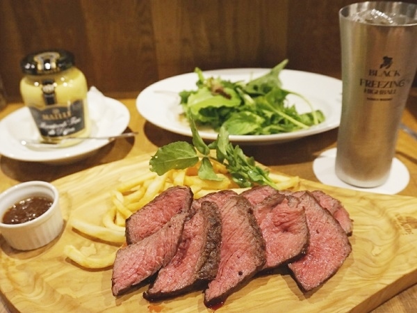 ランチタイムは、通常1,200円の『肉屋のサーロインステーキ』が、