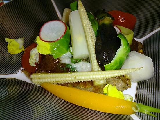 ヤングコーンの向こうに見えるのは、”とき山わさび”をおろしたもの。