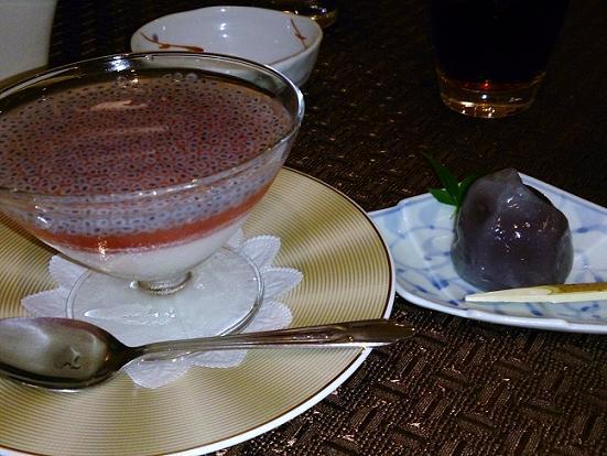 3層に見えますが、下が杏仁豆腐、赤い部分がスイカのゼリー。