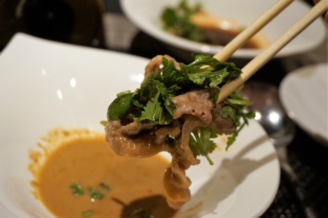 エスニックなお味のたれは、パクチーともよく合う!