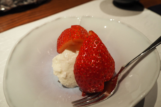 デザートは、パンナコッタと大きめのとちおとめ。