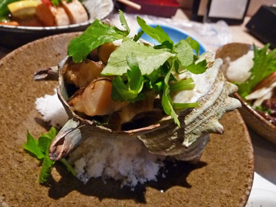 サザエ 2コ 600円 (だけど、『食べログ クーポン』で 1人1コずつプレゼント )