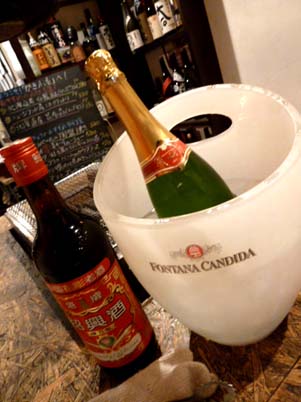 お店から30mくらいのとこにある酒屋さんで、シャンパン と 紹興酒 購入。