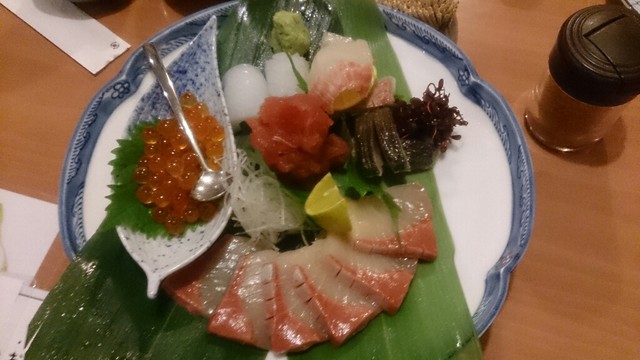 刺盛りは3種と5種がありましたが、3種を。店員さんに聞けば、その日の単品でのメニューで食べたいものがあれば、優先して出してくれることもあるようです。個人的に好きな、アオリイカとしめ鯖を頼みました。あと1品はスズキだったようです。