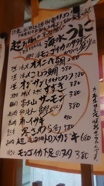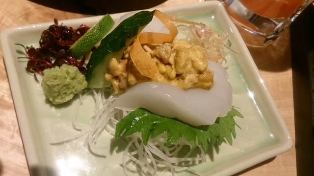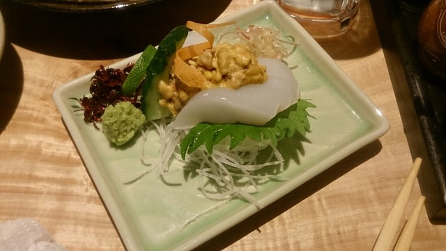 刺身で、おじさんをチョイス。白身で淡白な感じですが、脂も載っていてなかなかに味わい深い美味しい魚でした。モンゴイカ下足のぬた和え、前回は食べたのに写真がありませんでしたが、今回は写真付きです。イカもネギ?も美味しかったです。
