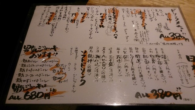 ここは、男気ビールなど、大ジョッキ設定があるのもうれしいですね。日本酒も、立ち飲みの方とラインナップが違うので、色々と試してみてますが、もうそろそろコンプリートしたかもしれません。