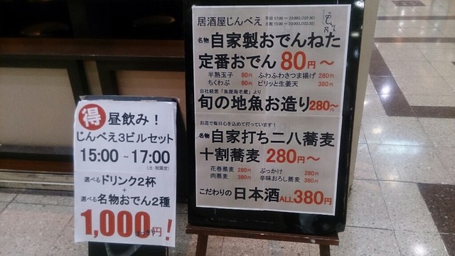 少し前に立ち飲みじんべえで、いつもいるはずの板さんがいないので店長に聞いてみると、実は大阪駅前第3ビルに、そばメインの店を出してそっちにいってて、寂しがってると思うので行ってみて、と言われていたのですが、ようやっと行くことが出来ました。