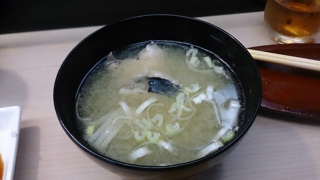 途中でアラ汁が出てきました。何のアラかは忘れましたが(ヒラマサあたり?)、普通の味噌汁なんですね。ちゃんとダシはでてましたし、やや薄味でしたが美味しかったです。