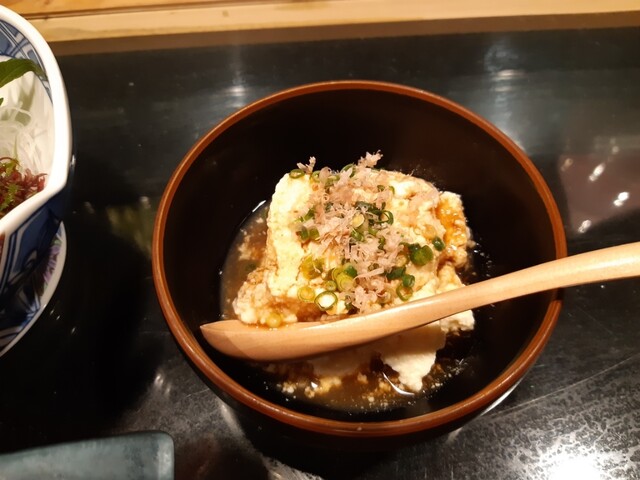 何かの巻貝の煮付けはとにかく美味しかったです。酢みその和え物も美味しくて、早々に日本酒を頼みました。刺身は、地のものかどうか、サーモンがあったあたりで怪しい気がしましたが、水準以上の味でまずまずでした。おぼろ豆腐は、まあ美味しかったですけど、嬉野温泉の温泉湯豆腐とも全然違って特徴的なものはなく、唐津ならではの要素は感じることができませんでした。