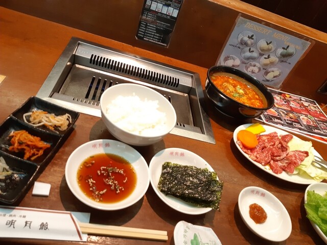 明月館定食のカルビスープとロース肉