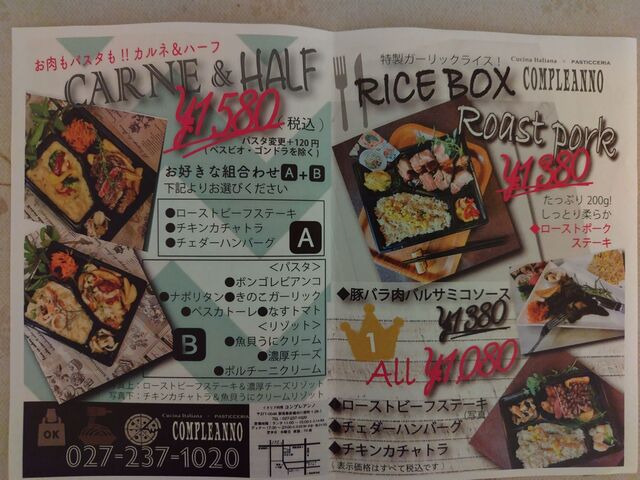 前橋市川原町のイタリアン「コンプレアンノ」でテイクアウト。