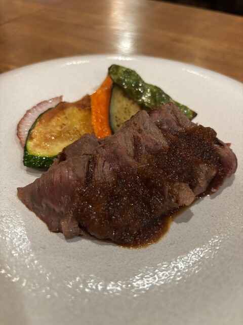 まずいただいたのがサーロインステーキ。肉厚なのにナイフがすっと入るほど柔らかく、噛むほどに肉本来の旨味がじわっと広がります。添えられたソースも主張しすぎず、お肉の味を邪魔しない絶妙な感じでした。