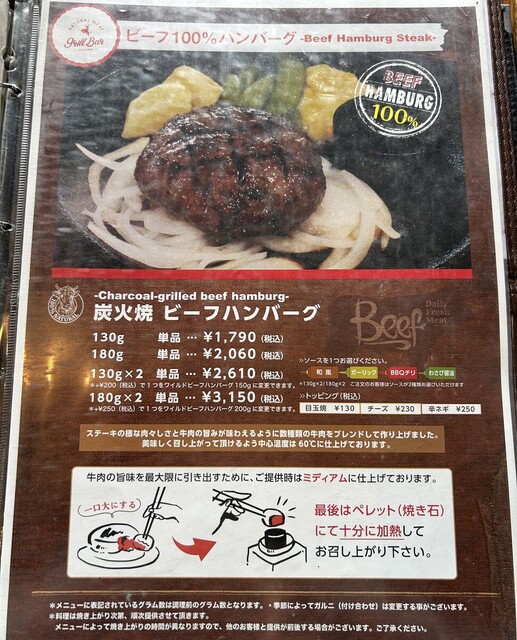 2種類の国産牛を自店で粗挽きと細挽きにした挽肉使用の牛肉100%ハンバーグ「ワイルドハンバーグ」
