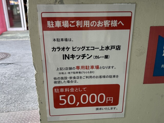 隣のビルの1階部分に20台分以上(ビッグエコーや他店舗との共用駐車場)