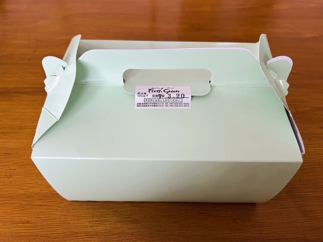 ちなみに、高さがあるためケーキボックスの蓋が閉まらず、蓋が空いた状態でのお渡しとなりました。