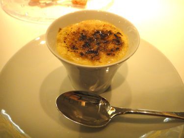 パッションフルーツにマスカルポーネのソースでしたか。上はクレームブリュレらしくバーナーで炙った飴で閉じてあります。パイナップルがいっぱい沈んでいますが、その中にキャラメルソースをアルギン酸ナトリウムでボールにしたものが入っていました。