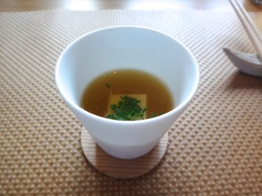 突き出しはコンソメスープ。とろみがたっぷりの冬瓜のコンソメ。冬瓜の味がしっかりしています。
