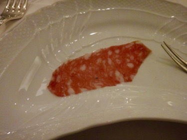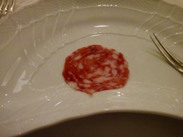 3ヶ月熟成のサラメ・フェリーノ。シェフ修行先の特産。旨味も塩気も強いものでした。