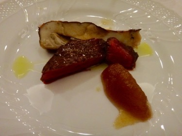 付け合せには焼いている香りがまるで肉のようなイタリアのポルチーニ。そのロースです。