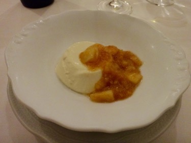 デザート)ラテインピエーティ 山梨産白桃のヴェルッタータ添え
