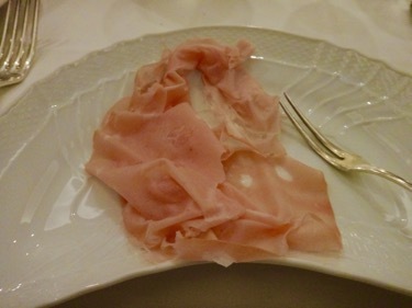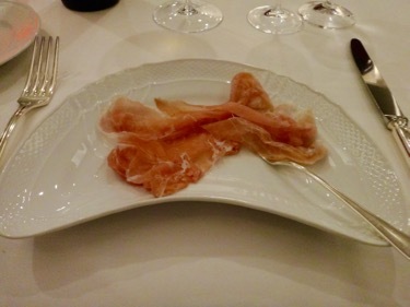 まずはほぼ脂に近い豚頬肉の生ハムを単独でいただく。