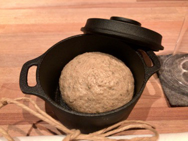 南部鉄器の中で焼かれるパン。これから焼くものです。