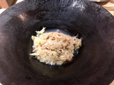 昔恵比寿にあった「ポルセッコ」の焼きリゾットを思い出しましたが、より雑炊的に米の輪郭がはっきりしています。それも旨味を吸った米で旨味の相乗効果が。毛蟹の身も美味しい。これは異次元の美味さ!!