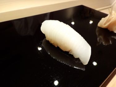 握りの最初はアオリイカ。細かく包丁が入れられ、甘みを増したイカがシンプルに美味い! 酢飯もネタとしっくり来て美味しい。