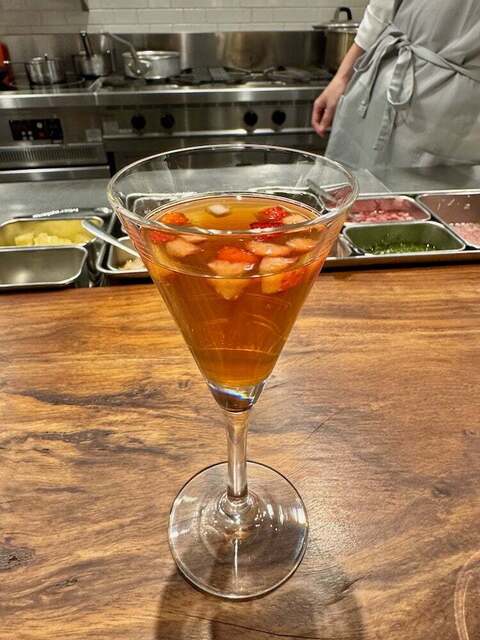 緑茶、リースリングの果汁、パイナップル。緑茶の渋みと葡萄の甘さ、パイナップルの酸味が複雑です。
