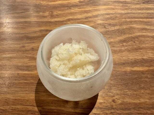 自家製の甘酒。上にシチリアのオリーブオイルと黒胡椒。
