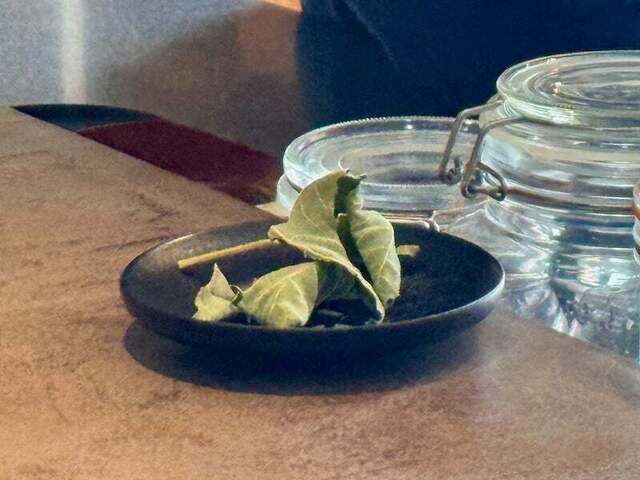 ラプサンスーチョン。クロモジの葉を乾燥させたものを入れたそうです。松の煙で燻した独特の中国紅茶の香りにクロモジの爽やかさと苦味があります。