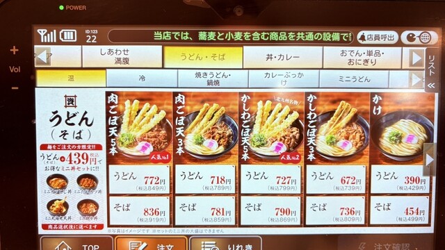 「かしわごぼう天3本 739円」を注文。提供は思ったより遅く12分待ち、「あれ?ひょっとしてカウンターに取りに行くの?」と思ったころ、配膳されました。