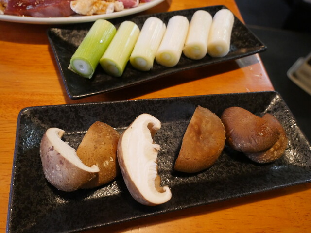 野菜で「なるほどな」と感心したのは「深谷ネギ」の食べ方。店員さんから、真っ黒になるまで焼いて、いちばん外側の焦げた皮をむいてくださいと説明がありました。なるほど、中はほどよく火が通り、甘みだけを味わえます。コロンブスの卵のような経験でした。
