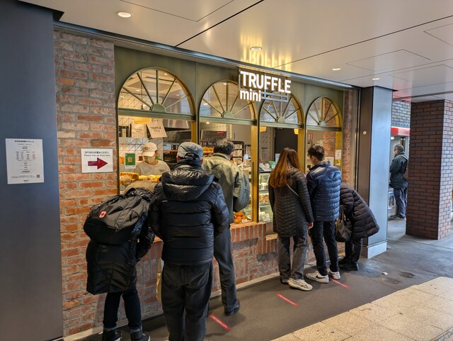 一番人気という「白トリュフの塩パン」。トリュフを食べ付けていないので、味をどう表現したらいいのか分かりません。店のホームページを見ると、トリュフバターを生地で巻いて焼いているようです。なるほど、それで中が空洞なのか。「表面はカリッと白トリュフが香り、中はバターと心地よいトリュフの香りに引きと弾力のあるパンとして焼き上げております」とのこと。「芳醇」と表現すればいいでしょうか。