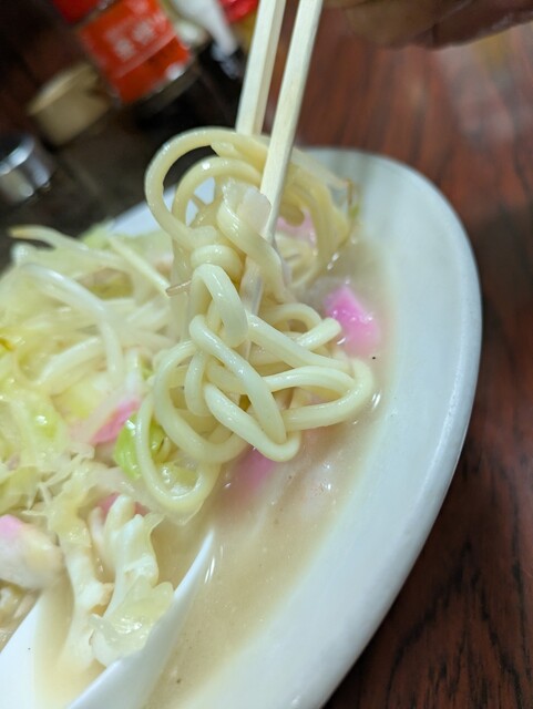レンゲでスープをひと口。魚介や野菜のうま味が溶け込んで、濃厚な“甘み”が口の中に広がります。「これこれ、この甘味!」。ちゃんぽんはスープのこの甘みが命、と勝手に考えています。