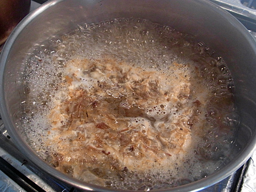 醤油、みりん、砂糖を合わせて煮る