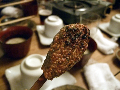 今回はコースでお願いしたようで、コイつくしでした。どちらかというと僕の苦手な粕汁は、ここのは美味かった。最初からこれなら先が楽しみ。会社の忘年会ということもすっかり忘れ、食べまくりです。お酒は有名な十四代。初めて呑みましたが、バナナみたいな甘い香りがするものでした。〆のいくら雑炊まで一気でした。会費制だったので金額は推定ですが、これならプライベートでも行ってみたいですね。あと、店主が出てきて能書きを述べる店は大抵ロクでもないんですが、ここの場合は問題なし。亀仙人みたいな店主は客といっしょに酔っぱらってるだけのようです。