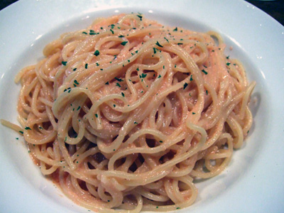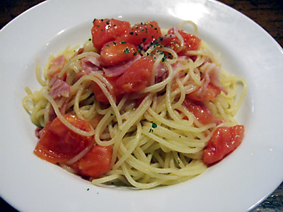 で、その後やや僕のランチローテーション入りしてきたこの店。中4日ってペースかな?やはりいつも混んでるのが難点です。トマトソース行ったときはニンニクが凄いのでびっくり。午後、仕事しながらずっと口の中に残ったましたもん、美味しかったんですが、へたな餃子やラーメンよりもニンニクが強烈ですので、接客業の方は気をつけた方がいいかもしれません。レギュラーで580円というお得感のある明太子は意外や味は濃いめです。メニューから言ってお客さんの女子比率がが多いこの店ですが、かなり味は濃いめですね。どっちかというとがっつり男子系の味かもしれません。[2012.2]